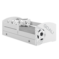 Nombre de produits: 549Lit enfant LUK GOAL 70x140 avec barrière, tiroir, poignées et motif ballon de football - Blanc