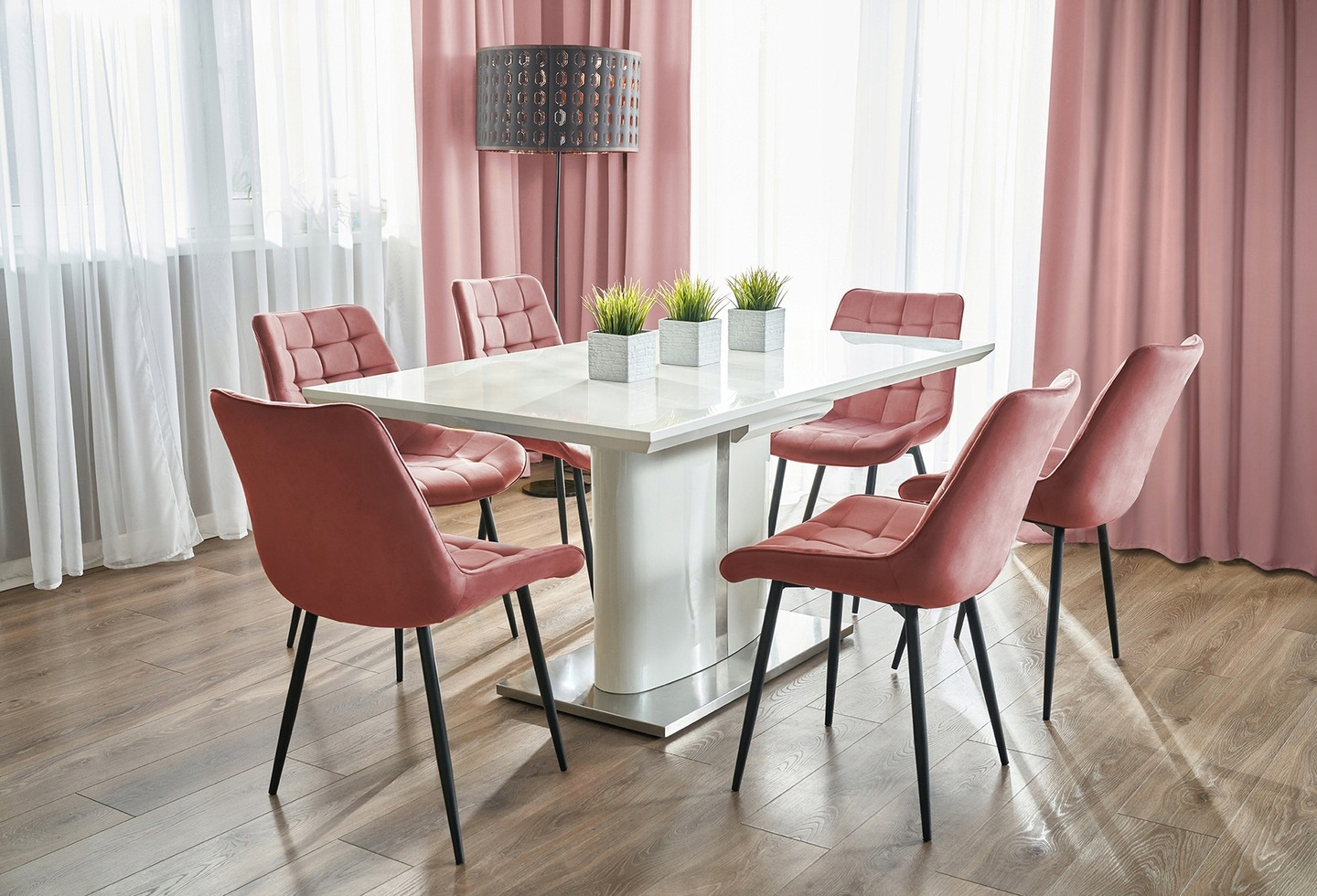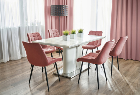 Les pieds hauts et fins de couleur noire apportent à la chaise une allure chic et moderne. Leur structure garantit une stabilité parfaite, rendant la chaise à la fois esthétique et fonctionnelle.