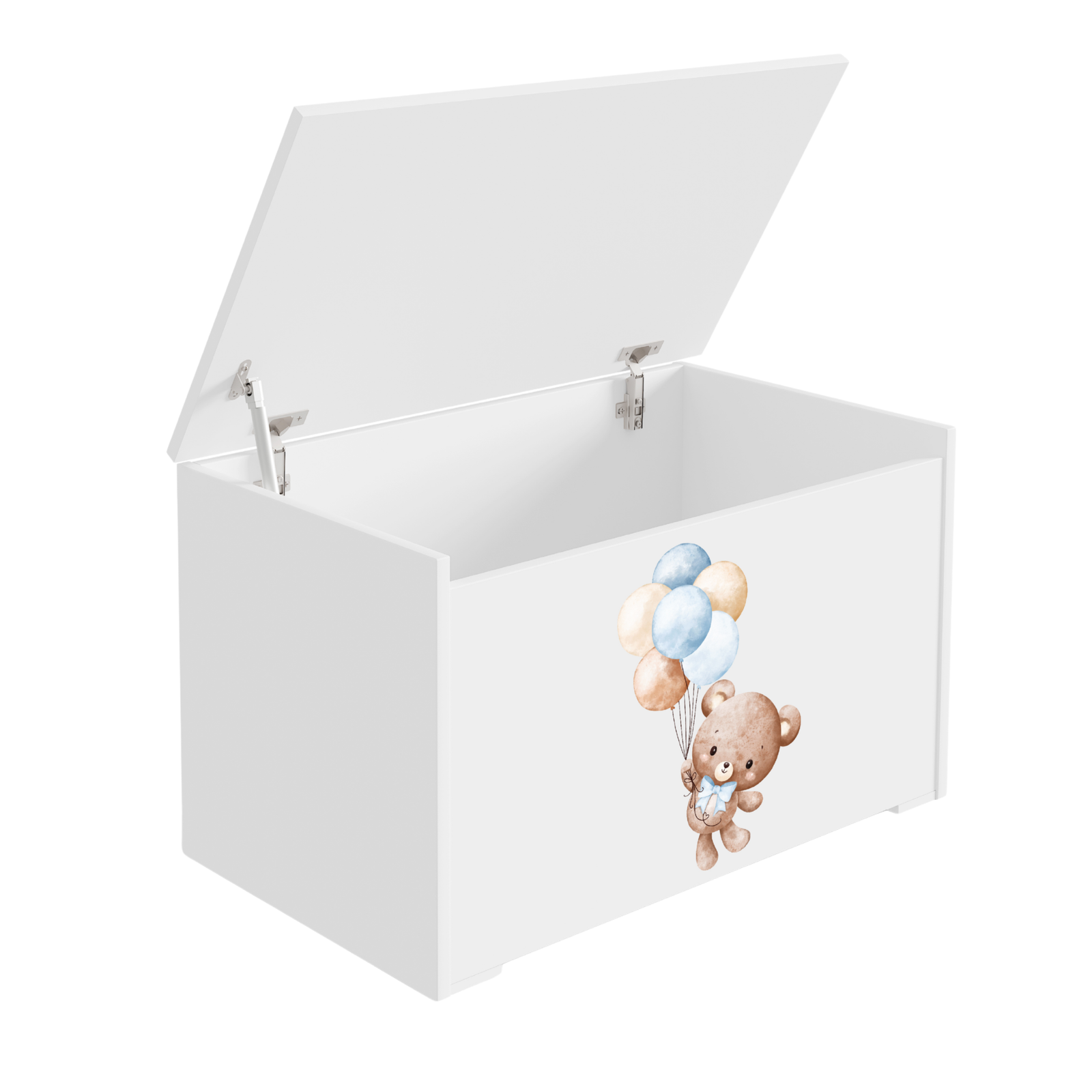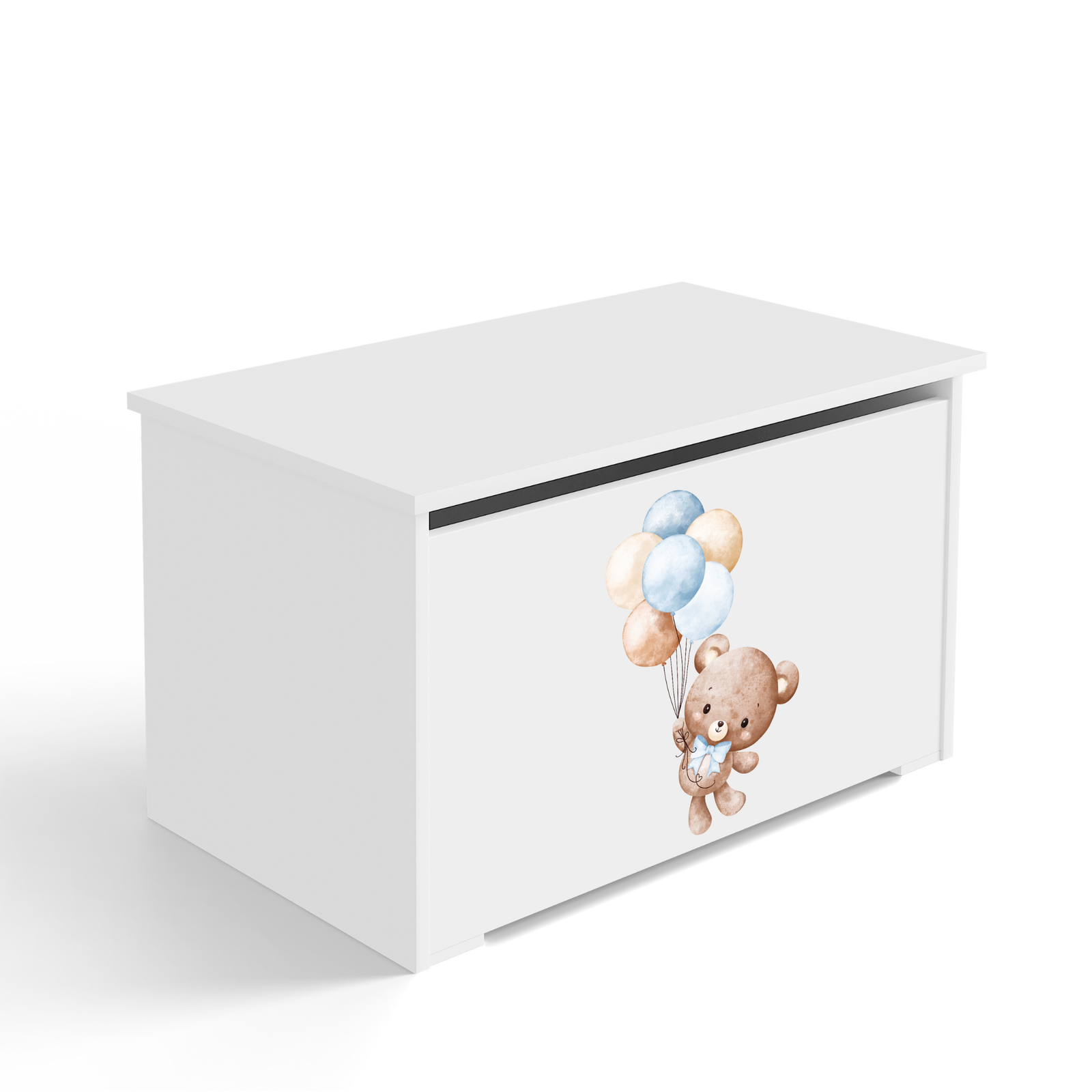 Le coffre se caractérise par une fabrication soignée avec une attention portée à chaque détail. Il est fabriqué en panneau de meuble stratifié des deux côtés, ce qui garantit solidité et résistance aux rayures. Le couvercle s’ouvre vers le haut grâce à un vérin à gaz. L’intérieur offre beaucoup d’espace pour des objets de différentes tailles. La couleur blanche facilite l’intégration dans divers décors, et le motif coloré imprimé par technologie UV assure une résistance à l’usure tout en ajoutant une touche décorative unique au coffre. Grâce à ce coffre à jouets, le rangement devient un jeu d’enfant.