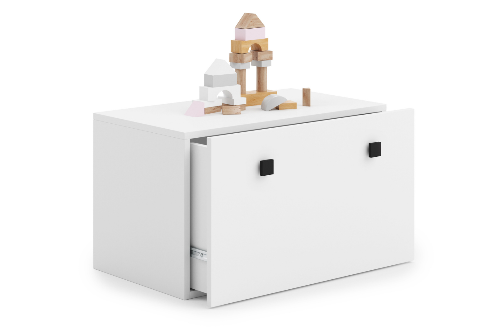 Ce coffre se distingue par une fabrication soignée, avec une attention portée à chaque détail. Il est fabriqué en panneau stratifié double face, assurant solidité et résistance aux rayures. Le tiroir à sortie totale facilite le rangement, tandis que les poignées minimalistes permettent une ouverture et une fermeture confortables. L’intérieur spacieux peut accueillir des objets de tailles variées. La couleur blanche facilite l’intégration dans toute décoration. Grâce à ce coffre, ranger la chambre devient un jeu d’enfant.