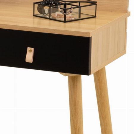 La coiffeuse est fabriquée avec des matériaux de haute qualité qui garantissent sa durabilité et sa solidité. Les éléments en bois lui confèrent un caractère chaleureux et cosy, tout en étant écologiques et respectueux de l'environnement.
