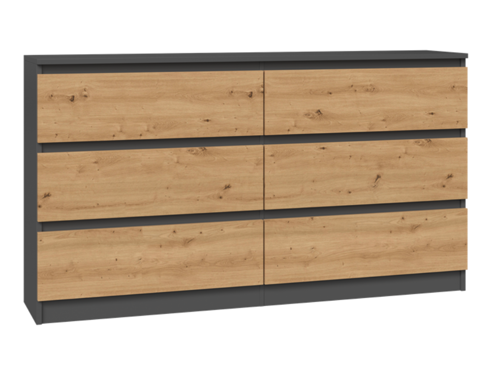 La commode moderne de la collection MALMO M6 est la solution idéale pour ceux qui recherchent à la fois fonctionnalité et élégance dans un seul meuble. Parfaite dans la chambre, le salon, la chambre d’enfant ou même un grand hall d’entrée, elle apporte espace et ordre. Son design minimaliste et la variété de finitions colorées lui permettent de s’intégrer facilement à tous les styles d’intérieur. La commode MALMO M6 est équipée de 6 grands tiroirs, offrant un vaste espace de rangement pour vêtements, documents ou autres objets. Grâce à leurs tiroirs profonds et spacieux, vous pouvez organiser toutes vos affaires tout en les gardant hors de vue.