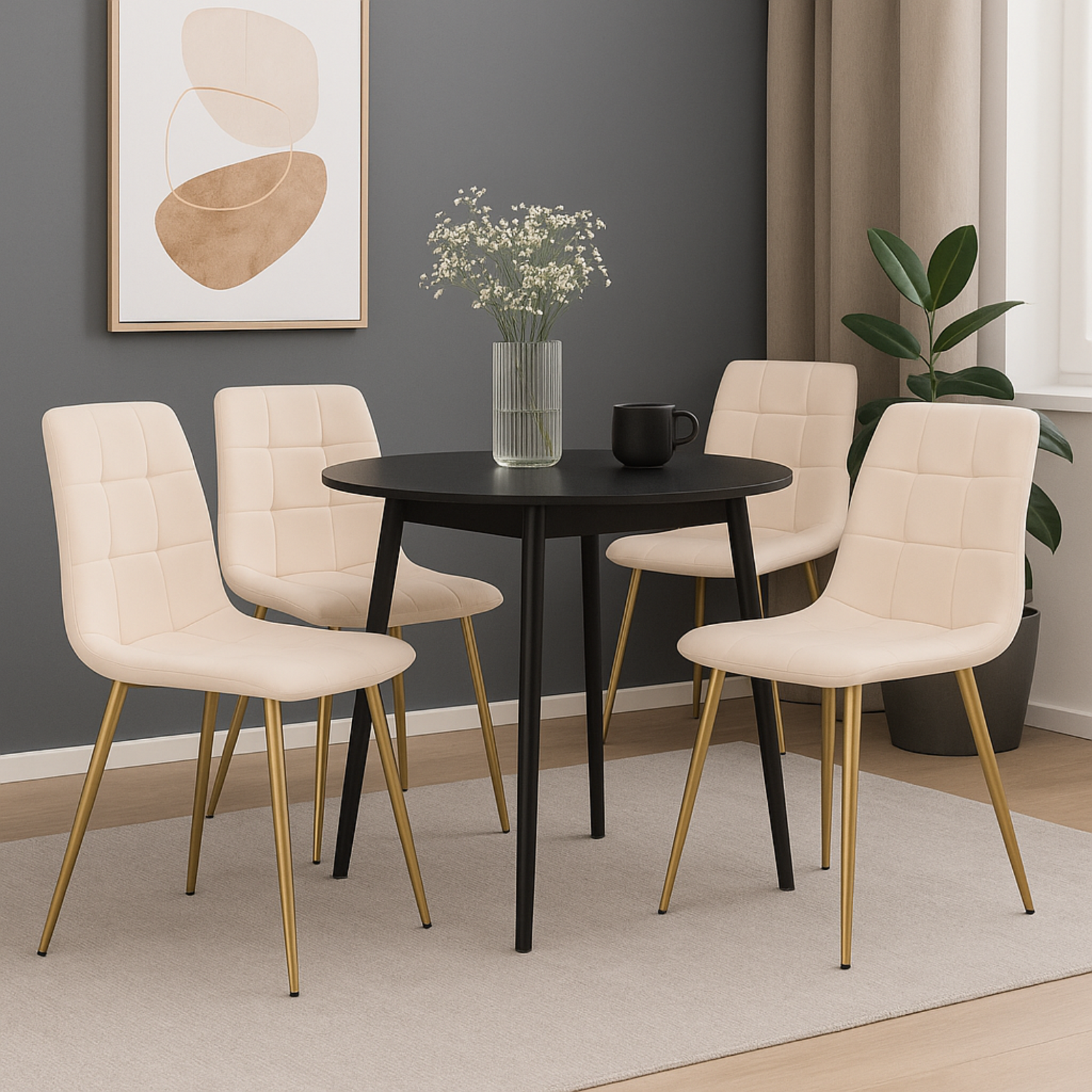 • Ensemble de 4 chaises tapissées, recouvertes d’un tissu velours doux de haute qualité, couleur crème