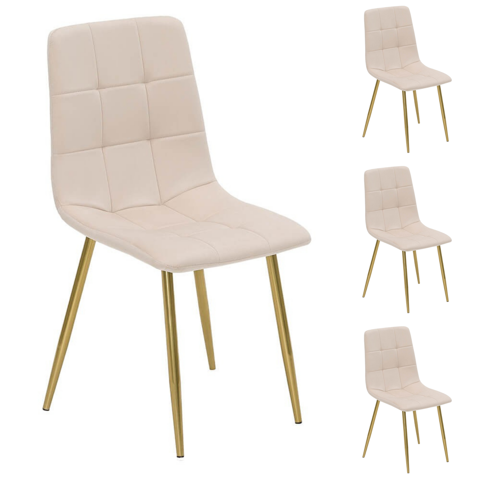 Ensemble de 4 chaises NEL tapissées en velours matelassé - couleur Crème, pieds Dorés