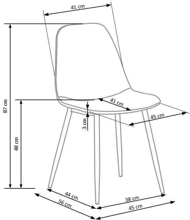 Cette chaise a été conçue pour un usage quotidien. La structure est fabriquée en acier peint par poudrage, ce qui garantit sa durabilité. La construction et l’agencement des pieds hauts et fins assurent une excellente stabilité. Le tissu velvet de haute qualité qui recouvre l’assise offre un grand confort et souligne l’esthétique moderne de la chaise.