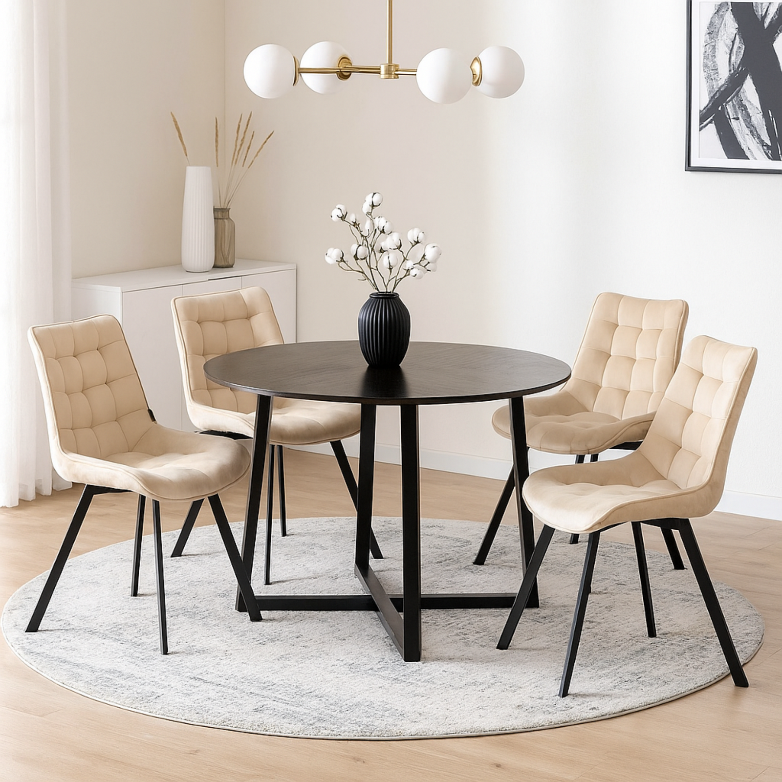 - Ensemble de 4 chaises tapissées, recouvertes d’un tissu velours doux de haute qualité, couleur crème