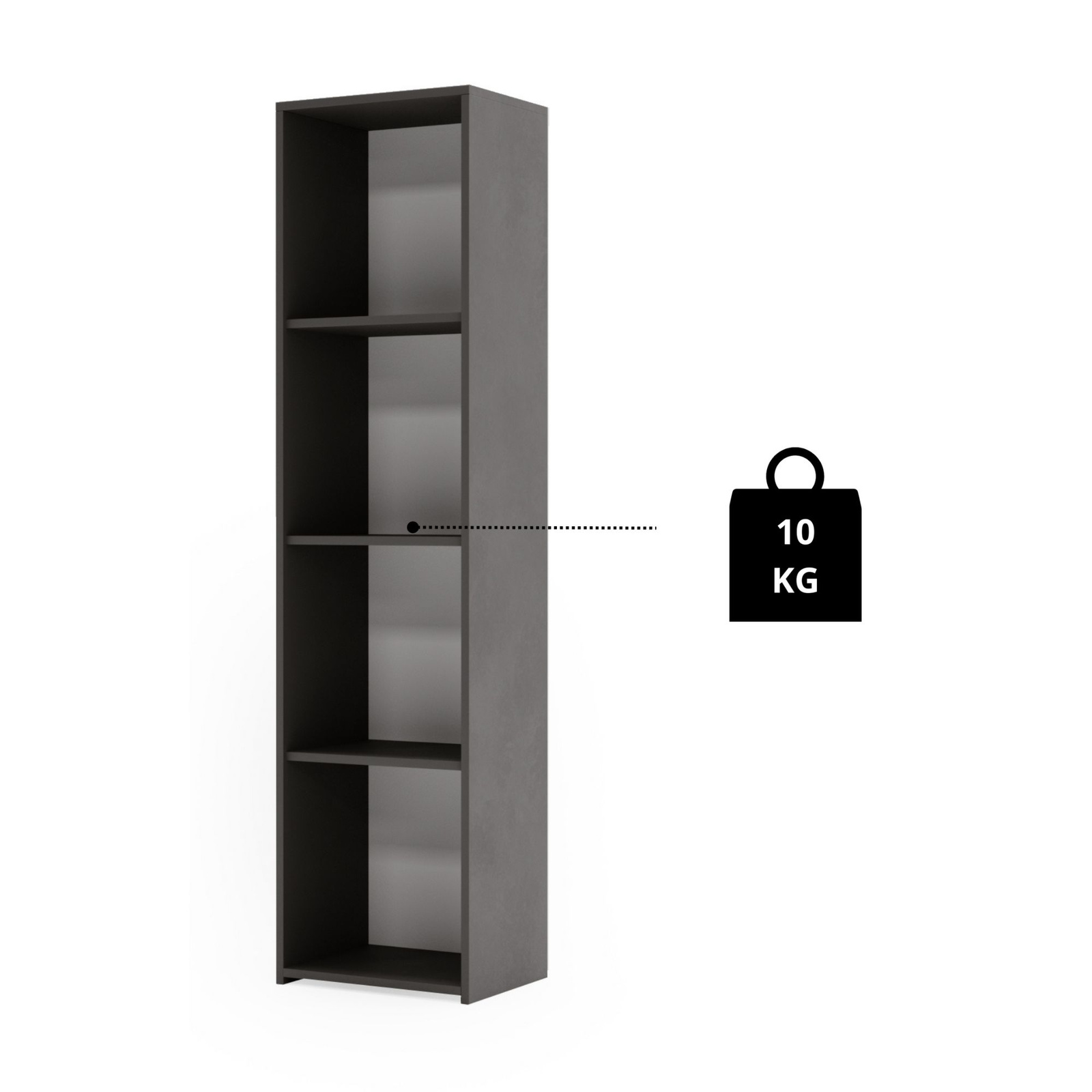 L'étagère LONI est fabriquée à partir de matériaux de haute qualité. Le corps du meuble – sans panneau arrière – est conçu en panneau de meuble stratifié de 16 mm d’épaisseur. Les étagères sont réalisées dans le même matériau. Le panneau arrière est en HDF. Toutes les arêtes sont soigneusement finies avec des chants en PVC/ABS pour une meilleure durabilité et un aspect esthétique soigné.