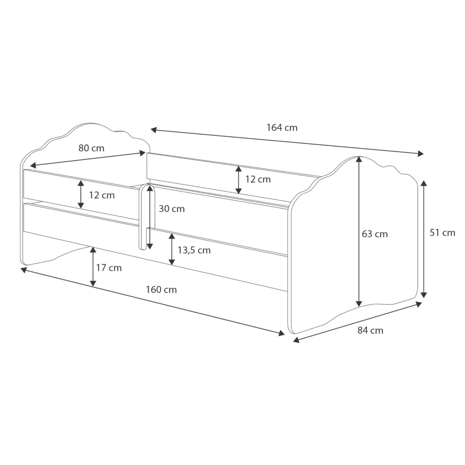 *MATELAS NON INCLUS - Lors du choix du matelas, veuillez suivre les recommandations du fabricant afin de sélectionner la taille appropriée. Pour ce modèle, un matelas de 160x80 cm et de 7 cm d’épaisseur est recommandé.