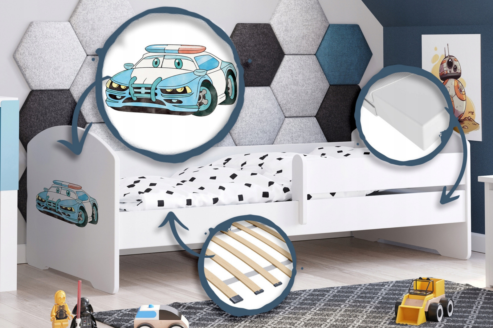 Lit enfant LUK 70x140 avec barrière graphique - Police