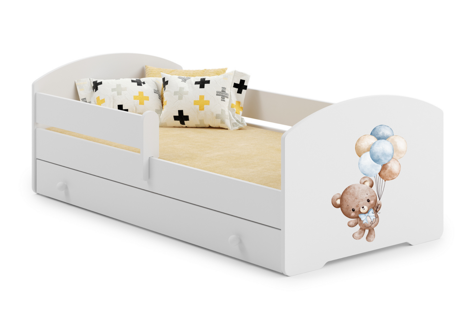 Lit enfant LUK 80x160 avec barrière, tiroir et graphique - Sweet Bear