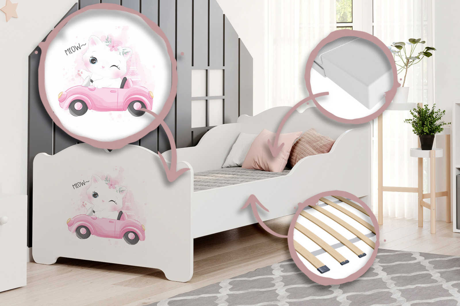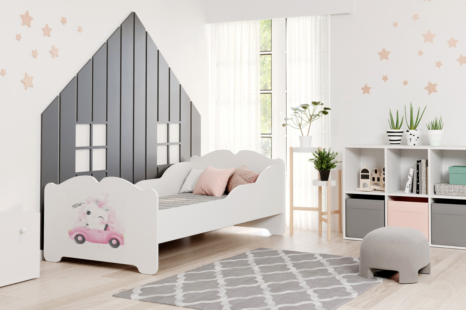 Le lit pour enfant ANNA est un meuble qui offre confort, sécurité et fonctionnalité. Grâce à son design universel, il s’intègre facilement dans différents styles d’aménagement. Ce modèle est parfait pour une chambre de fille. Le lit est proposé en deux dimensions pratiques – 70x140 cm et 80x160 cm – afin de s’adapter aux besoins d’un enfant en pleine croissance ainsi qu’à l’espace disponible. Le lit blanc avec illustration offre à l’enfant un espace sécurisé pour dormir et jouer, devenant rapidement son meuble préféré dans la chambre.