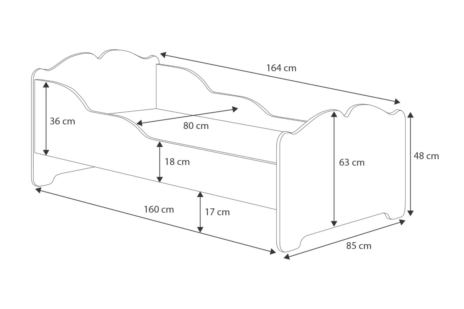Le lit pour enfant ANNA est un meuble qui offre confort, sécurité et fonctionnalité. Grâce à son design universel, il s’intègre facilement dans différents styles d’aménagement. Ce modèle est parfait pour une chambre de fille. Le lit est proposé en deux dimensions pratiques – 80x160 cm et 70x140 cm – afin de s’adapter aux besoins d’un enfant en pleine croissance ainsi qu’à l’espace disponible. Le lit blanc avec illustration offre à l’enfant un espace sécurisé pour dormir et jouer, devenant rapidement son meuble préféré dans la chambre.