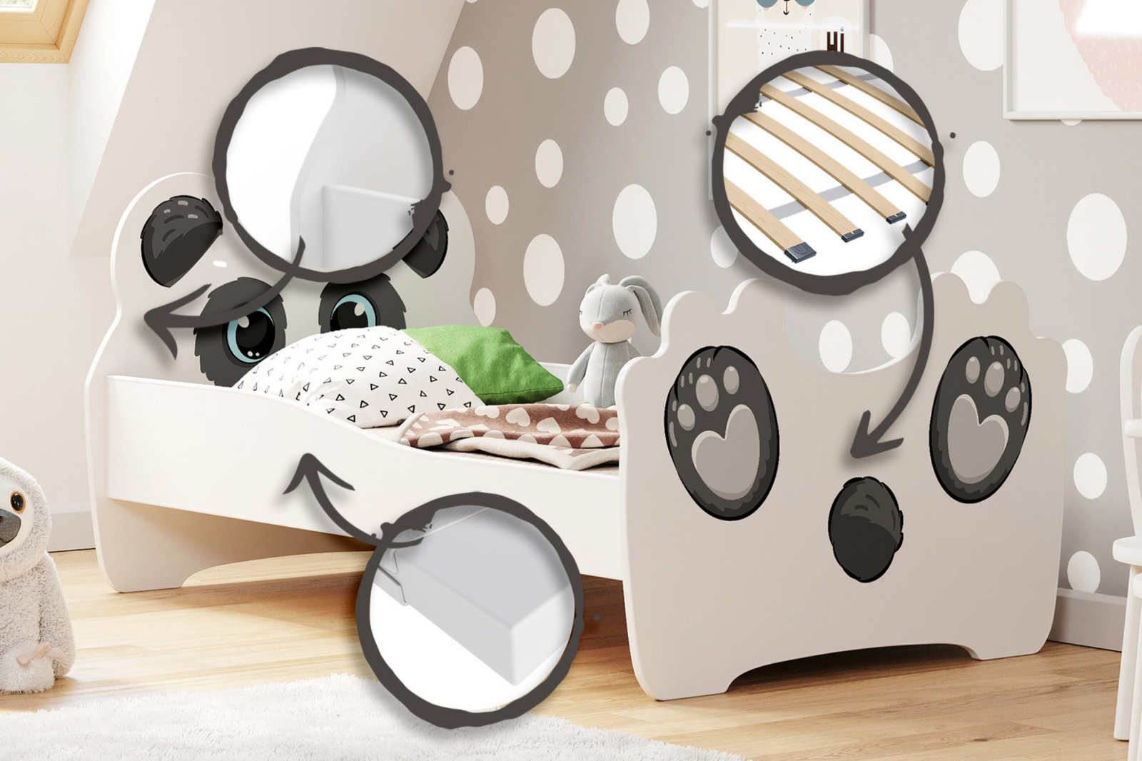 Le magnifique lit pour enfant avec motif animal n'est pas seulement un espace pratique pour dormir, mais aussi une décoration charmante pour la chambre d’enfant. Le petit ours toujours souriant deviendra un compagnon unique, rendant les moments passés sur le lit agréables, tant pour l’endormissement que pour le jeu. Le graphisme au motif de l’adorable petit ours apportera chaleur et joie à la chambre. Le lit PANDA est non seulement une solution pratique, mais aussi un élément décoratif exceptionnel qui ravira à la fois les enfants et les parents.