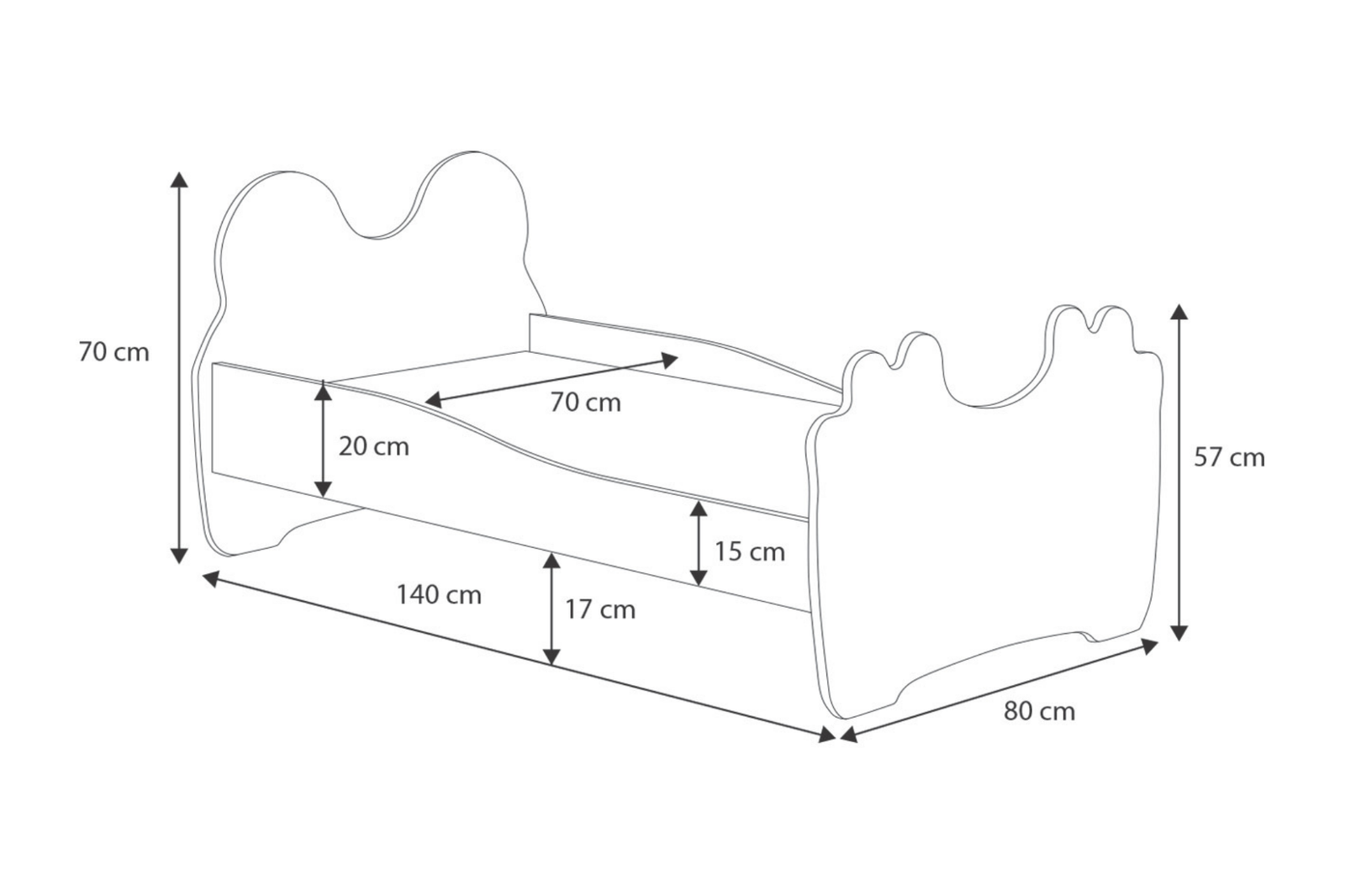 Le lit pour enfant a été conçu en pensant à la sécurité de l’enfant, c’est pourquoi sa structure stable est fabriquée à partir de panneaux de meubles de haute qualité. Tous les bords du lit ont été arrondis, ce qui augmente la sécurité pendant le sommeil ou le jeu. Une telle conception minimise le risque de blessures. Le graphisme de l’adorable petit ours est imprimé avec la méthode UV, garantissant durabilité et résistance à l’abrasion. Les encres utilisées sont totalement sans danger pour la santé de l’enfant. Le lit est livré avec un sommier à lattes flexibles en système FLEX et un matelas en mousse de 7 cm d’épaisseur avec housse amovible, facile à rafraîchir.