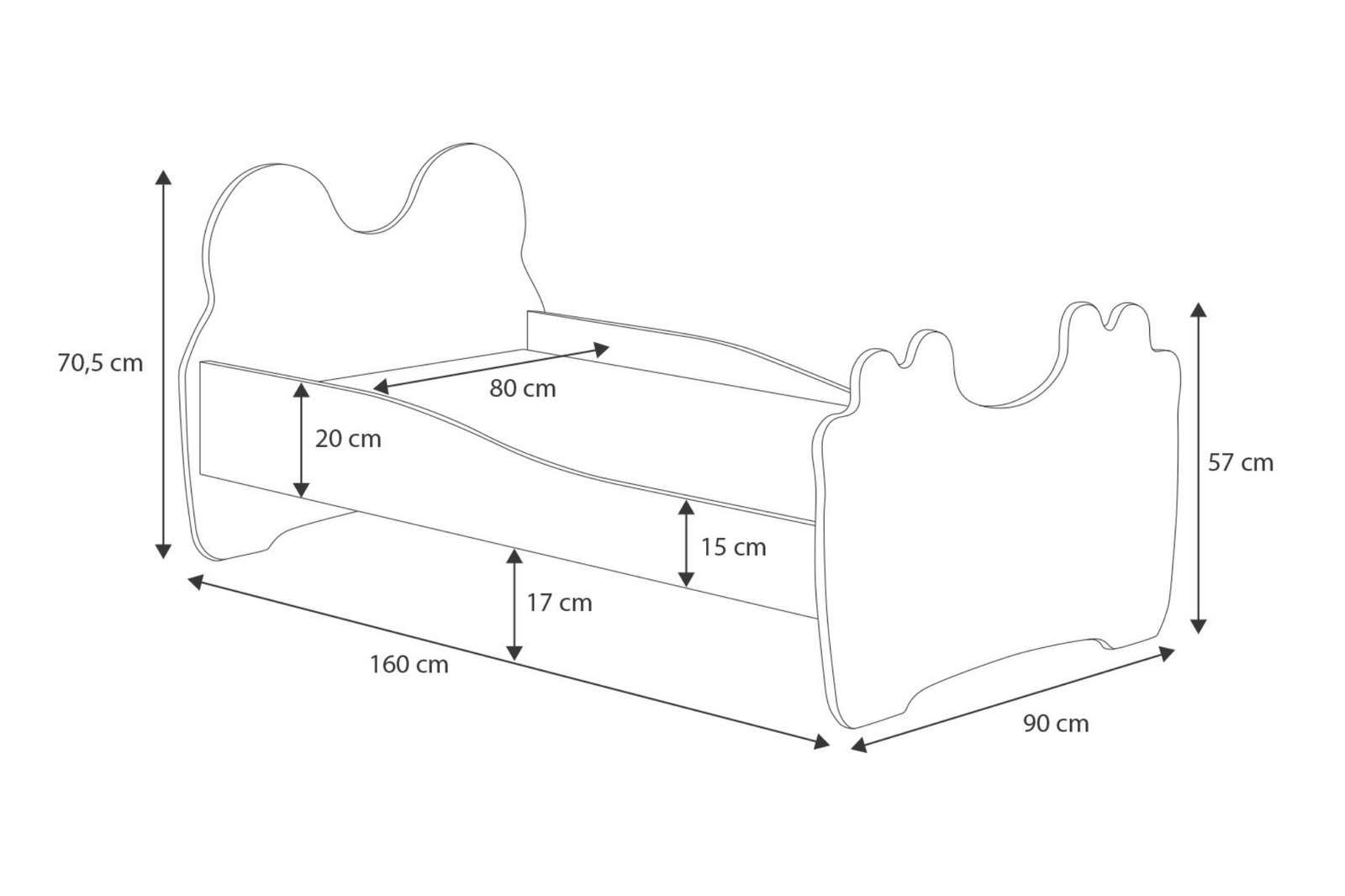 Le lit pour enfant a été conçu en pensant à la sécurité de l’enfant, c’est pourquoi sa structure stable est fabriquée à partir de panneaux de meubles de haute qualité. Tous les bords du lit ont été arrondis, ce qui augmente la sécurité pendant le sommeil ou le jeu. Une telle conception minimise le risque de blessures. Le graphisme de l’adorable ourson est imprimé avec la méthode UV, garantissant durabilité et résistance à l’abrasion. Les encres utilisées sont totalement sans danger pour la santé de l’enfant. Le modèle TEDDY BEAR est également disponible avec un tiroir, idéal pour y ranger la literie, une couverture supplémentaire, des vêtements ou des jouets. Le lit est livré avec un sommier à lattes flexibles en système FLEX et un matelas en mousse de 7 cm d’épaisseur avec housse amovible, facile à rafraîchir.