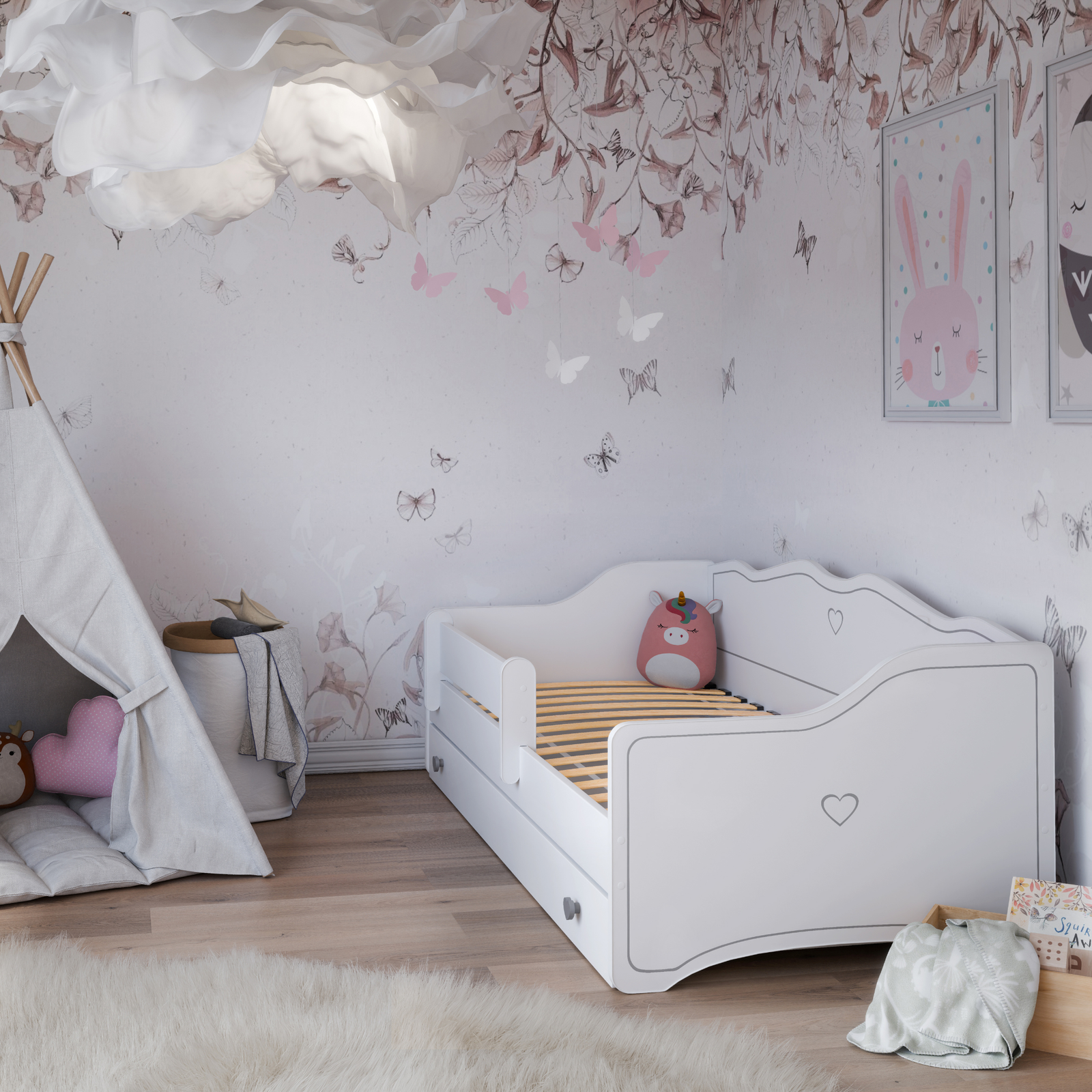 Le lit pour enfant EMMA est un meuble offrant confort, sécurité et fonctionnalité. Son design à la fois original et minimaliste permet au lit de s’intégrer facilement dans différents styles d’aménagement et d’embellir la chambre d’une petite fille. Les jolis détails tels que la décoration et les poignées en forme de cœur ajoutent du caractère. Lors du choix du modèle EMMA, il est important de prendre en compte sa praticité. L’un des avantages du lit est sa forme – aussi bien l’arrière que les côtés sont suffisamment hauts, ce qui permet au lit de servir de canapé pendant la journée, idéal pour s’asseoir et s’appuyer confortablement. Ce modèle de lit est disponible en trois dimensions pratiques – 140x70 cm, 160x80 cm et 180x80 cm – afin de l’adapter au mieux aux besoins d’un enfant en pleine croissance et à l’espace disponible dans la chambre.