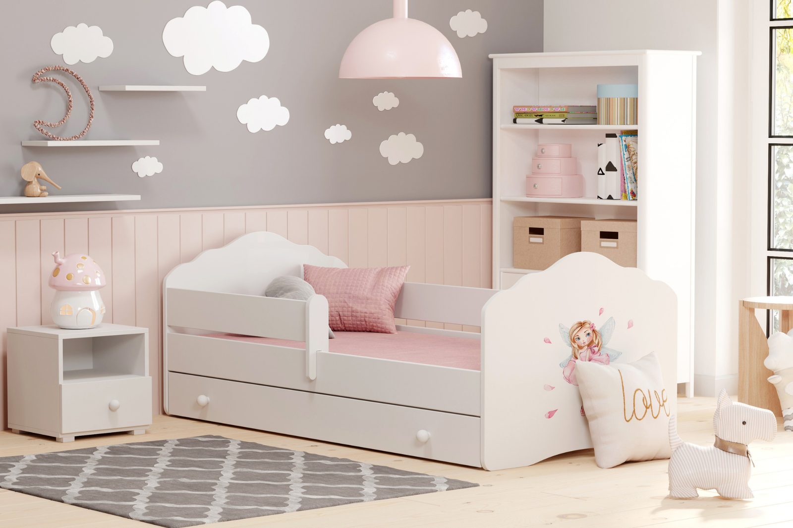 Le lit pour enfant FALA est un meuble qui offre confort, sécurité et fonctionnalité. Grâce à son design universel, il s’intègre facilement à différents styles d’aménagement. Ce modèle de lit est disponible en deux dimensions pratiques – 140x70 cm et 160x80 cm – pour s’adapter au mieux aux besoins d’un enfant en pleine croissance et à l’espace disponible dans la chambre. Le lit blanc avec motif offre à l’enfant un endroit sûr pour dormir et jouer, devenant rapidement un meuble favori dans la pièce.