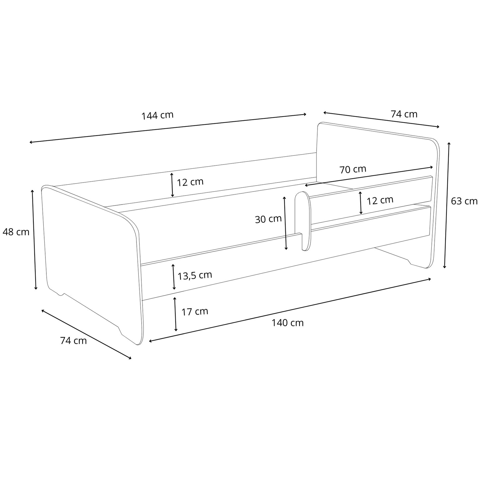 Ce modèle a été conçu en pensant à la sécurité de votre enfant. Sa structure solide en panneau de haute qualité et ses bords arrondis éliminent le risque de blessures, garantissant un sommeil paisible et un jeu sans danger. La construction robuste du lit MAX assure une utilisation durable. Les chants sont montés SANS COLLE, ce qui garantit non seulement une plus grande durabilité, mais aussi une meilleure résistance de l’ensemble de la structure. Le lit supporte une charge allant jusqu’à 110 kg, ce qui confirme sa solidité et sa stabilité. La barrière de sécurité protège ceux qui dorment de façon plus agitée et qui se retournent pendant la nuit. *MATELAS NON INCLUS – vous pouvez l’acheter séparément dans notre boutique. Ou opter pour l’offre incluant le lit avec matelas, également disponible sur notre site.