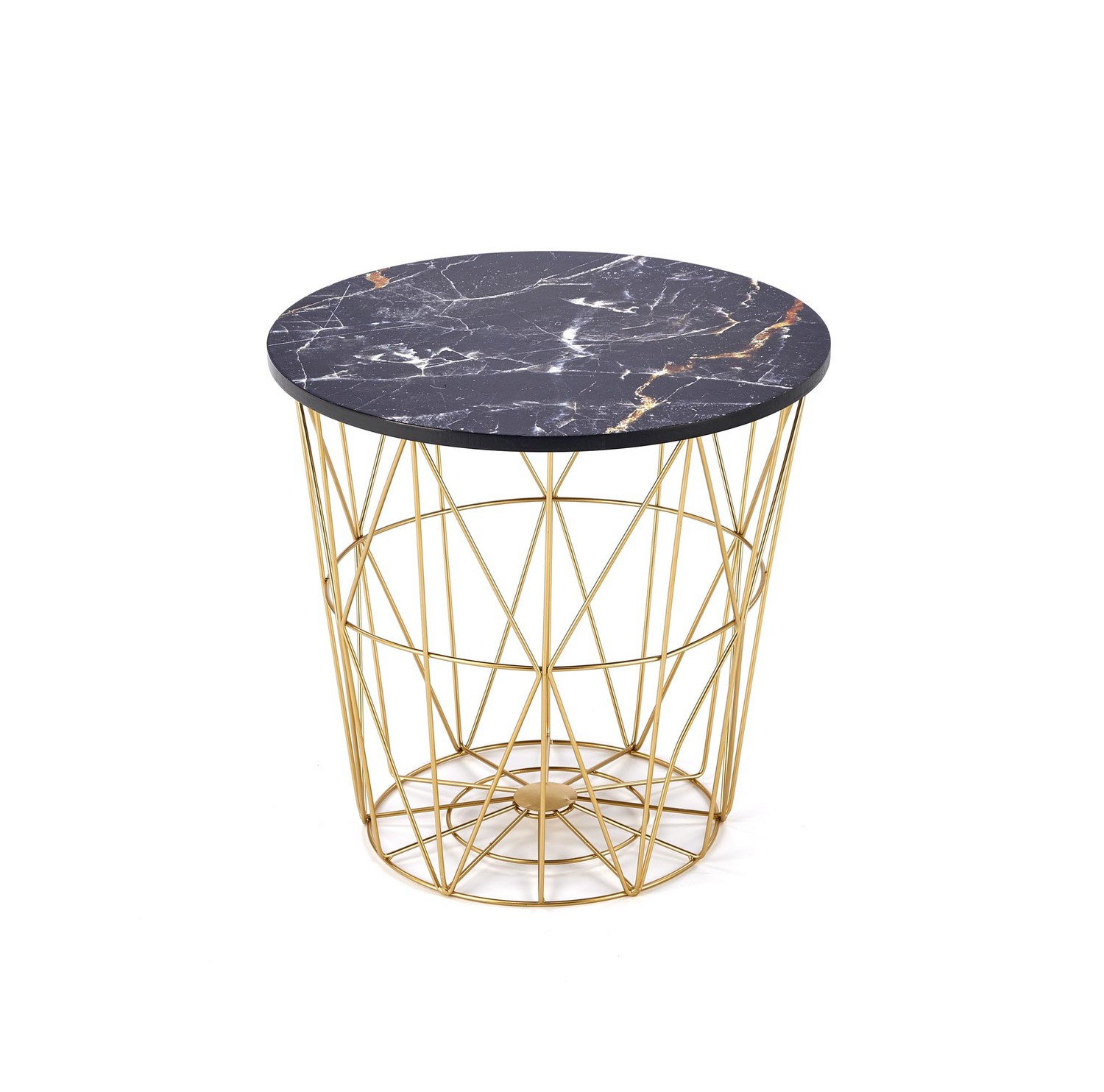La table est fabriquée à partir de matériaux de haute qualité. Le plateau rond est en MDF recouvert d’un placage à motif marbre avec une finition mate, ce qui s’harmonise parfaitement avec la structure métallique peinte par poudrage. La forme ronde apporte de la légèreté, tandis que la structure dorée souligne le caractère luxueux du meuble. C’est une table exceptionnelle qui apportera élégance et raffinement à votre intérieur. Grâce à sa conception bien pensée, elle est non seulement fonctionnelle, mais aussi solide et stable.