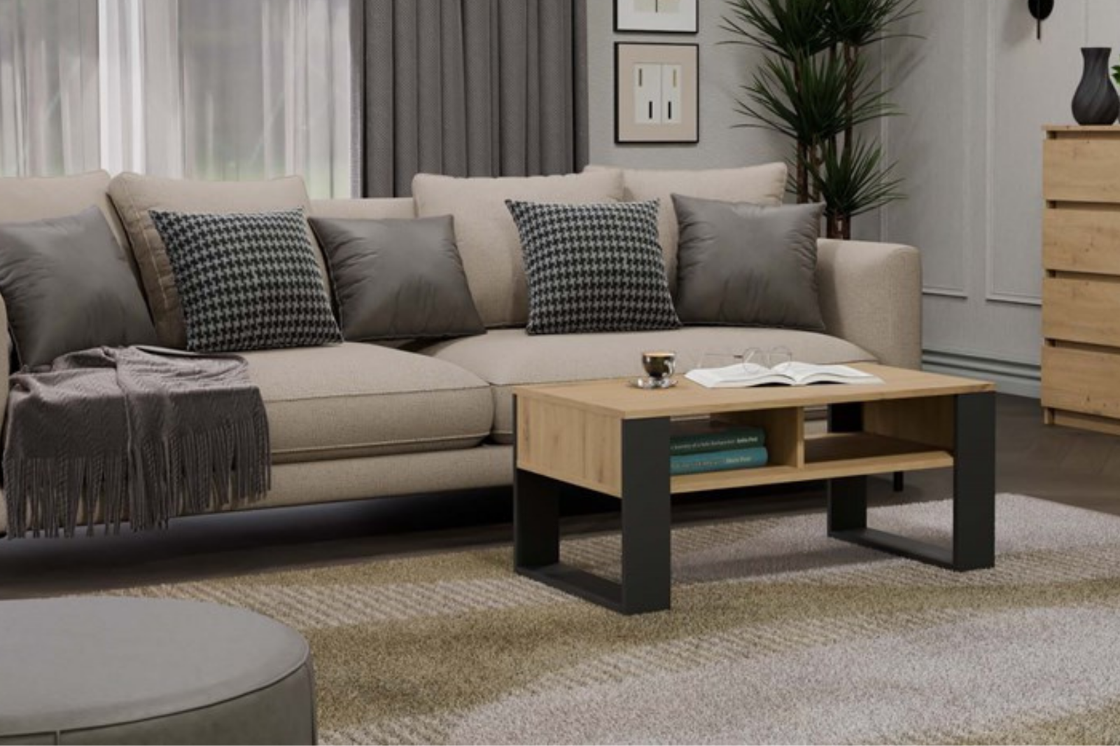 La table MODI moderne a été conçue pour le confort quotidien. Les deux étagères supplémentaires sous le plateau offrent un espace pratique pour les journaux, télécommandes, livres ou petits accessoires. Ainsi, vous pourrez facilement maintenir l’ordre et votre salon bénéficiera de plus d’espace utilisable. La structure stable et la fabrication solide garantissent que le meuble durera de nombreuses années. La table MODI est idéale pour le séjour des personnes qui apprécient l’élégance et la fonctionnalité réunies.