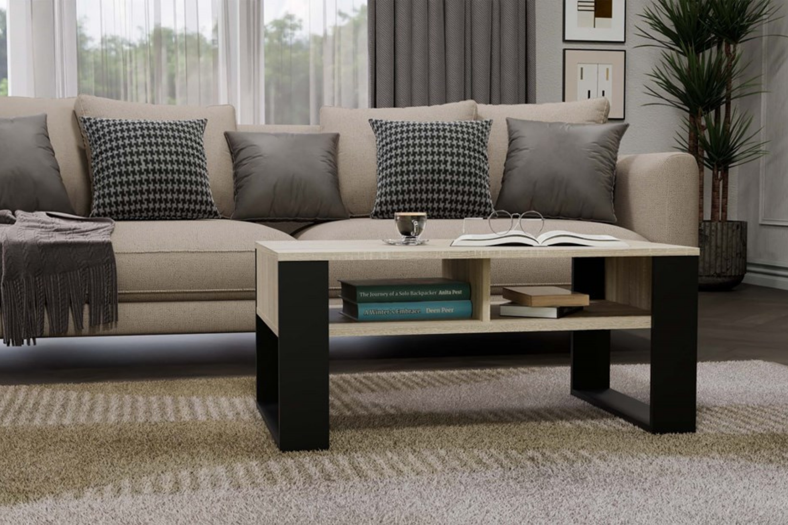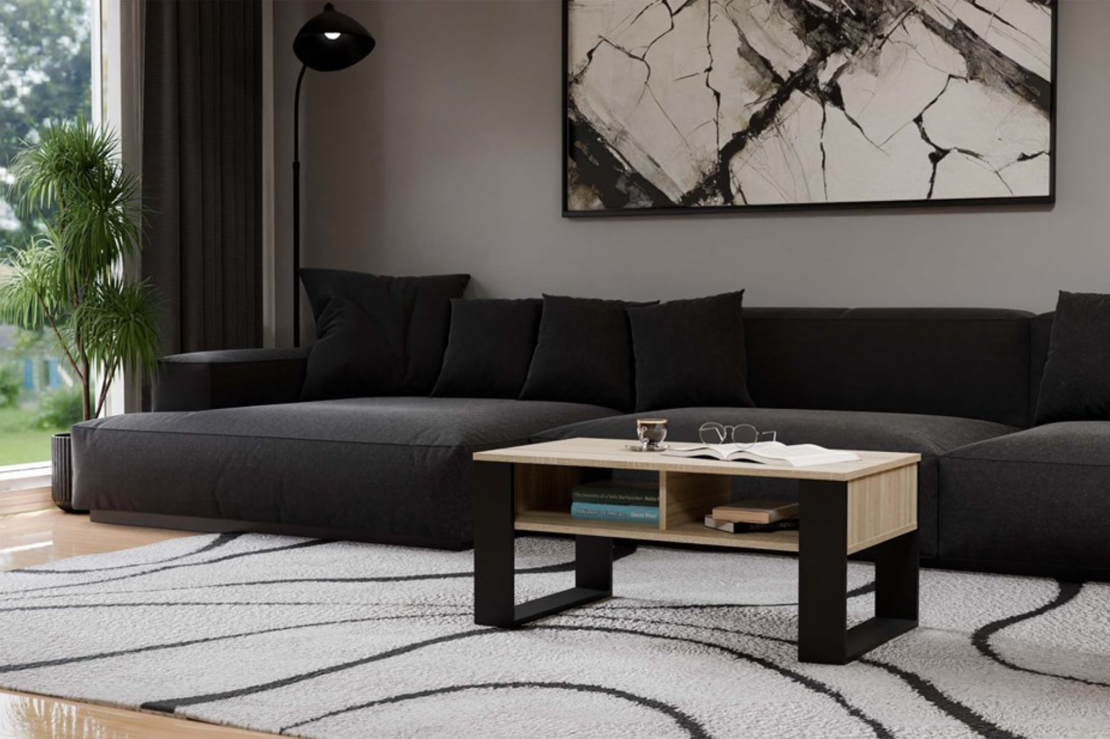 Table basse MODI deux étagères - Chêne Sonoma / Noir