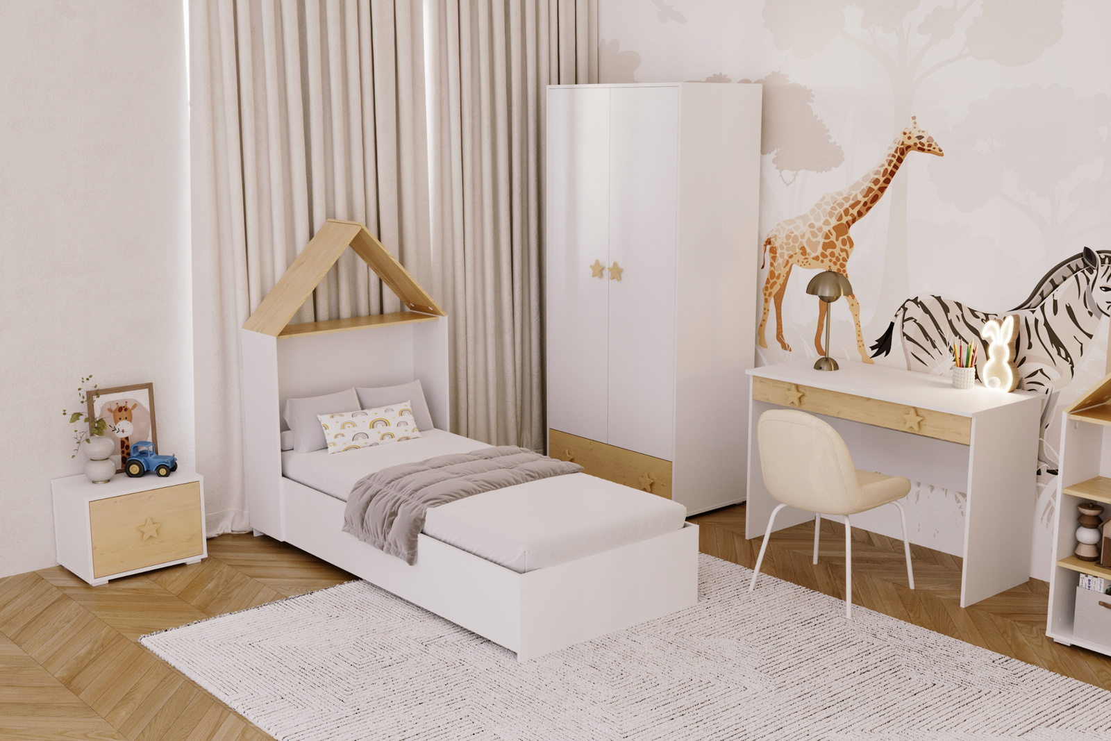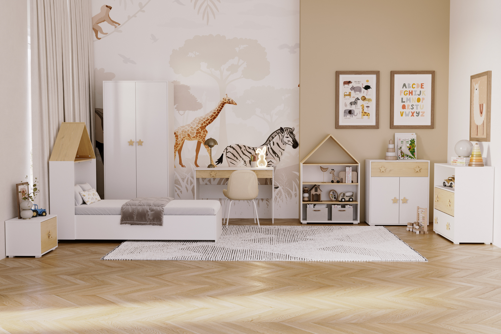 La table de chevet se combine parfaitement avec les autres meubles de notre collection PUFFI, qui permet de composer librement un ensemble adapté à la disposition et à la taille de la pièce ainsi qu’aux besoins de votre enfant. La collection comprend: