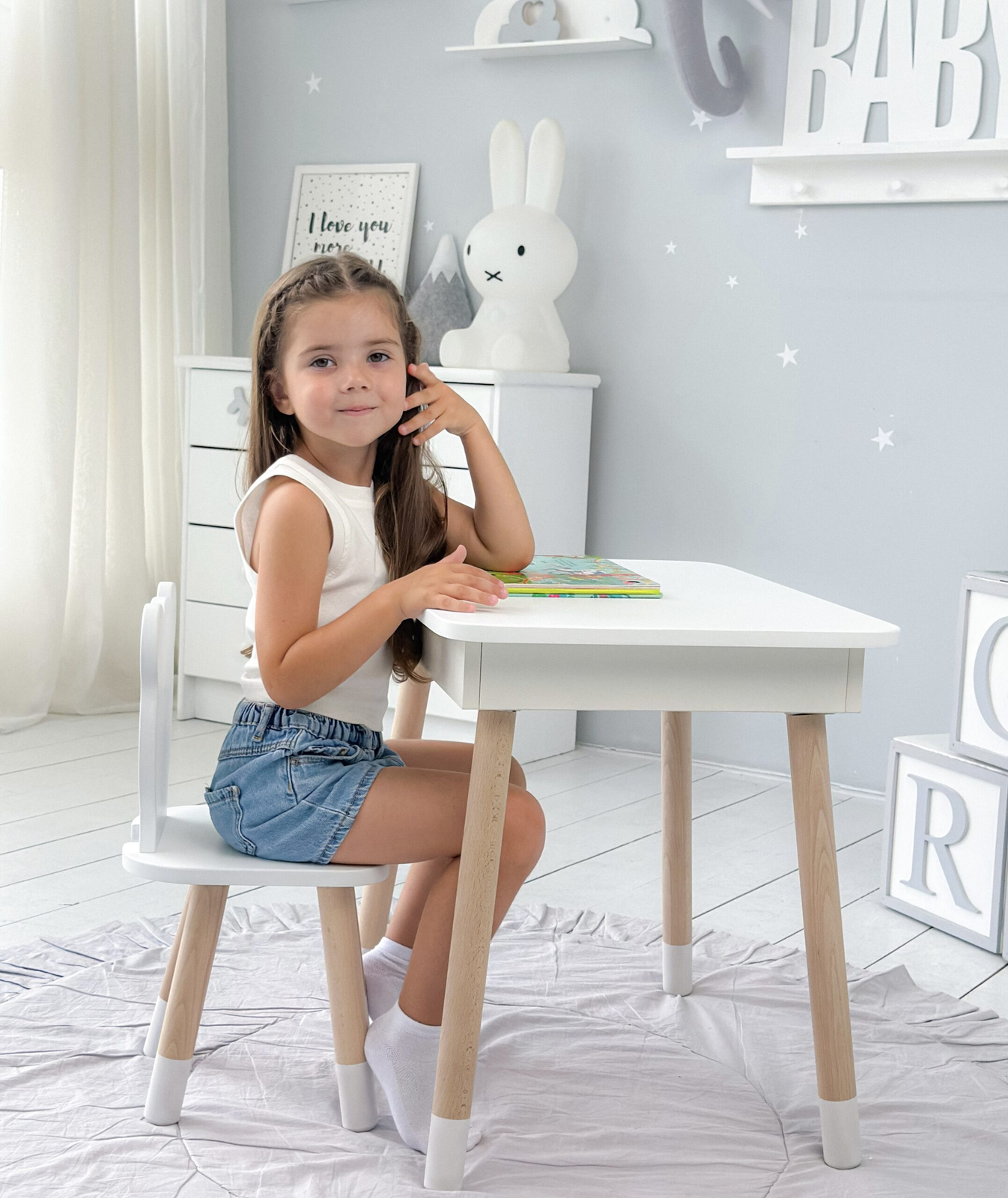 • Ensemble de meubles table et chaise pour enfant de style scandinave.